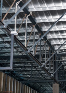 These steel structures are in addition being used for anchoring fire lines which run through the ceilings.
