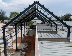 On the other hand, rectangular section trusses provide optimal strength-to-weight ratio for the canopy, ensuring it can withstand various loads and weather con-ditions and I-Beams are versatile beams highly efficient in supporting heavy loads, making them ideal for both columns and trusses in the shop’s structure.