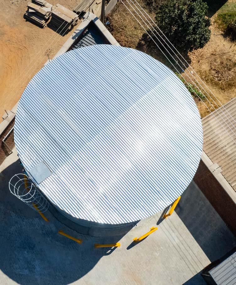 The steel tanks are lined with polyester-net-reinforced P.V.C. with seams sealed by a welding process to provide watertight joints. The liner material can withstand exposure to a range of chemicals and the structures carry a 10-year warranty against faulty material or workmanship, with a life expectancy of an anticipated 25 years. Tanks are available in different sizes to store anything from 30,000 litres up to 4,000,000 litres in heights from 1,3 to 6,1 meters, so there’s always something to meet your requirements. The reservoirs can be fitted with either shade cloth or steel roofs to prevent leaves, insects and other debris from entering the water. The steel roofs are completely sealed so there’s no dust if the water is intended for drinking purposes.